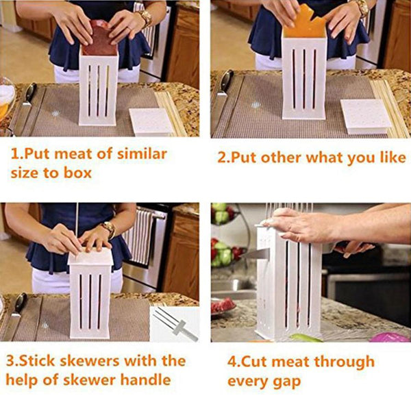 - Simplify and reduces the hassle of cutting individual pieces and inserting them on the skewers.