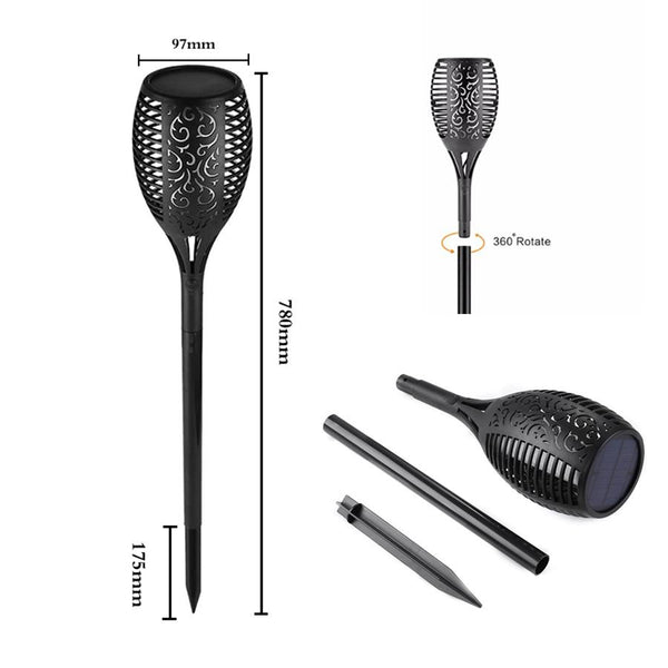 The solar spotlights run on solar power, so you can place it anywhere you want. The unique optical controlled technology can ensure the solar dancing flame lighting auto charging in the daytime